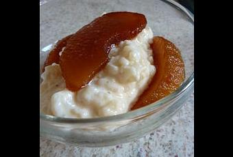 Lorsque le riz est cuit, versez-le dans des ramequins et intercalez des tranches de pommes granny. Servez tiède.