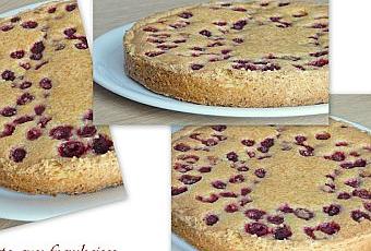 Parce qu'il me restait des framboises surgelées après avoir préparé les gâteaux d'anniversaire de mes 2 derniers, elles ont garni cette tarte.