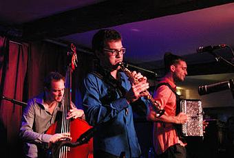 Pulcinella sort son deuxième album. L'info a fait le tour à vitesse grand V et on s'est, tout naturellement ai-je envie de dire, retrouvé, au Mandala, serrés comme des sardines en boîte pour déguster ce nouvel opus en live et en public. Intitulé "Travesti", il reste dans un registre proche de "Clou d'estrade", leur premier album (édité en 2008): mêmes sonorités, mêmes phrases subtilement fantasques qui allient rugissements, aux mélanges quelquefois balkaniques, d'autrefois clownesques, à la mélancolie et à l'humour. Parmi les changements les plus en vue, on retiendra la participation, entre chant et vocalises, de Mélanie Fossier qui susurre délicatement sur "Train Ukrainien", tandis que, en arrière, les instruments se font choeur. Pour ce morceau, Frédéric Cavallin a troqué la batterie pour un glockenspiel aux douces sonorités, sur lesquelles filent les voiles dans les méandres du sax de Ferdinand Doumerc.Dans ce registre qui susurre, il faut également avoir à l'oreille les bribes qui initient "La Belle-Isloise": les balais du batteur, l'accordéon par morceaux épars et la Belle-Isloise qui se découvre petit à petit. Les phrases sautillent, s'étirent, bougonnent, les sons se mélangent au point que le sax de Ferdinand Doumerc se fait percussions. Et que dire de "Grand-Hôtel" qui débute à la manière d'un tango. Peut-être est-ce cette alliance, franchement réussie, entre sévérité et mélancolie? Le chaud et le froid? Le sel et le sucre? Il y a dans ce morceau une tension salvatrice où les ruptures et les envolées s'entrechoquent pour le plus grand bien de nos oreilles. La sensation est garantie. On pourrait évoquer chacun des neufs morceaux qui constituent ce nouvel album, la musette moderne de "Maladroite", la course, tout feux allumés et toute en klaxon, de "Regancho", qui se termine en un slow bourré d'humour, et on arriverait à la même conclusion: Frédéric Cavallin, Florian Demonsant, Ferdinand Doumerc et Jean-Marc Serpin, qui constituent ce tonitruant quartet, ont réussi ce tour de force, qui est la marque de leur qualité: créer un univers unique, aux ambiances délurées, reconnaissable entre mille.