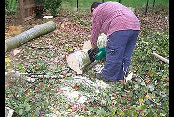 Celle qui a été utilisée est une tronçonneuse électrique. Le problème avec ce type de matériel c'est que les fabricants n'ont absolument pas pensé aux personnes ayant des petites mains. Les 2 interrupteurs prévus pour être actionnés en même temps avec la main droite sont trop éloignés l'un de l'autre. Je suis donc dans l'impossibilité d'utiliser la tronçonneuse électrique.