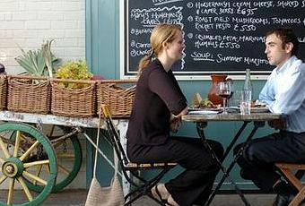 Ici la cuisine est méditerranéenne et c'est la qualité et la simplicité qui dominent. Au menu: des olives bien sûr, mais aussi des tapas et un menu de saison qui change chaque semaine. Nous avons commencé par un apéritif: je n'ai pas pu résister à l'appel du kir, un plaisir rare dans les restaurants anglais... En entrée, nous avons partagé une assiette avec aubergines grillées, tomates séchées et mozarella, puis nous avons tous les deux opté pour un plat principal à base d'agneau et de riz: un vrai délice! Nous avons de nouveau partagé le dessert (à noter que ça n'a pas du tout été vu d'un mauvais oeil, comme c'est parfois le cas): un savoureux carrot-cake dont le seul souvenir me donne encore l'eau à la bouche!