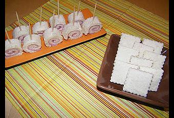 Sur 2 d'entre elles, étaler le fromage et déposer une demi tranche de jambon.