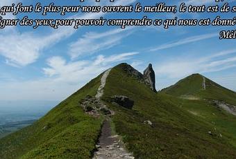 En lisant les mots de Mélusine, je les ai tout de suite associés à une de mes photos représentant un sentier en ligne de crête sur le massif du Sancy :