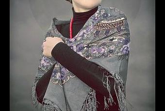 Marta sur les bords du lac d'Enghien les Bains dans le Val d'Oise.Elle porte un foulard traditionnel Polonais.