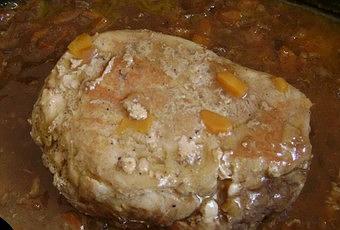 4) Remettre le rôti dans la cocotte, assaisonner de sel, poivre et cannelle. Couvrir et laisser mijoter 2 heures.