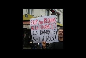 Pancarte stop aux requins de la finance les banques sont à nous (Photothèque Rouge/Christian)
