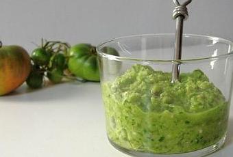 Laver les tomates vertes. Les couper en petits dés. Peler et hacher la gousse d'ail.