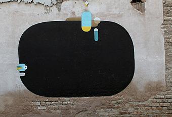 AGDMAG a rabattu la capuche de son hoodie, enfilé ses baskets virtuelles et a arpenté les streets html pour trouver un artiste en formes et en couleurs. Un savant mélange de Mirò / Ellsworth Kelly, mais dans un univers urbain, sur de splendides murs vierges, c’est un véritable appel au crime sublime.