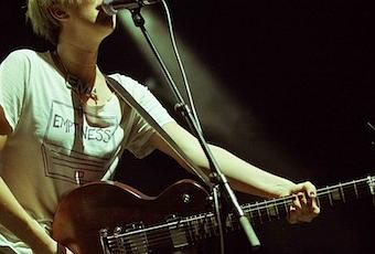 (Crédits : Pierre Le Bruchec)Deuxièmes à entrer sur scène, les petites punkettes de Dum Dum Girls, toutes habillées de leurs traditionnels collants résilles, de leur robes mini-mini et coiffées de leur habituelle frange. Et franchement, si le look est très travaillé, leur comportement sobre - la bassiste, qui se dandine mollement, est même carrément amorphe - et leur rock ensoleillé font plutôt plaisir à voir et à entendre. Elles enchaînent à cent à l'heure des titres oscillants entre Blondie et les Ramones. Et comme leur set se termine par une percutante reprise de "There Is A Light That Never Goes Out" des Smiths, on se dit que ces nanas-là, à défaut de révolutionner quoi que ce soit, disposent d'un atout charme indéniable.La suite est française et se cache derrière un étonnant pseudo : Le Prince Miiaou. Déjà auteurs de trois disques intéressants sans être pour autant toujours passionnants, j'attendais avec curiosité leur performance. Elle fut malheureusement à l'image de leurs albums, en demi-teinte. Prétentieuse sur le fond - beaucoup d'effets inutiles - comme sur la forme - quid des lunettes de ski et des flûtes en plastique lancées dans le public sans qu'on sache très bien pourquoi. On peut évidemment mettre ce comportement froid et distant sur le compte du stress d'un premier Olympia. Malheureusement, si au final il est difficile de nier l'évidente recherche, nous n'avons pas été vraiment convaincus. Cette musique n'est pas assez directe.