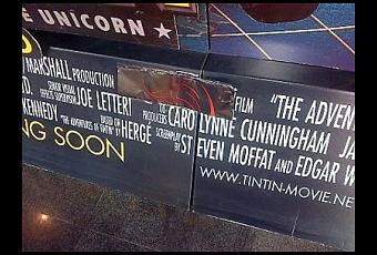 Le cinéma est un divertissement, et il ne devrait pas servir à de desseins politiques. Des affiches de Tintin , le dernier Spielberg, ont vu le nom de ce dernier recouvert de bandeaux.....