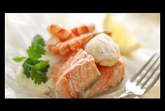 2/ Décortiquez les crevettes et rincez vos pavés de saumon.