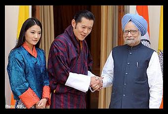 En fait, j'ai décidé de créer une nouvelle rubrique: le VoiciGala exotique (ou VGE)du blog de Kakrine. Avec un "special tribute to" mes people exotiques préférés: le Roi du Bhoutan, et sa nouvelle Reine. Non pas que je raffole spécialement du ghota habituellement, mais là, je me dis qu'après avoir été tenues en haleine par leur mariage royal et ses préparatifs, nous allons désormais suivre leurs aventures. Ils sont jeunes, ils sont beaux et glamours, leurs noms sont imprononçables: de quoi égayer un peu ce blog, parce que les bonnes nouvelles en provenance de Bangkok inondée risquent quand même de se faire rares sur cette fin d'année! Donc si on veut un peu de carnet rose, il va falloir aller le chercher sous d'autres cieux...Après leur mariage le 13 octobre, et une lune de miel en Inde, notamment à Jaipur (voir la passionnante video d'une visite de musée par les jeunes mariés là, un peu de culture, c'est toujours fun en voyage de noce), retour au boulot: les deux tourtereaux enchaînent les voyages à l'étranger à des fins diplomatiques. Ca, c'est la version officielle. Ils doivent bien en profiter pour faire un peu de shopping: je ne suis pas sûre que Prada ou H&M aient envahis le Bhoutan, donc bon...Premier arrêt pour Jigme Wangchuk et sa jolie Jetsun: l'Inde bien sûr, le 24 octobre dernier. "Visite de courtoisie au Premier Ministre , dîner avec le Président, puis ... voyage romantique en train vers le Rajasthan et ses palais..." (je n'invente même pas, c'est là: il y a pire, comme job, non? je savais bien que j'allais vous faire rêver...) Ensuite, Singapour pour une visite privée de quatre jours, le 1er novembre. "Le couple royal a rencontré le président Tony Tan Keng Yam et Mme Mary Tan, le Premier ministre Lee Hsien Loong et ancien ministre Lee Kuan Yew" (voir ici). Ils ont dû évoquer le "happiness index" bhoutanais, ou "indice du bonheur national brut" dont pourrait s'inspirer Singapour (ici et là)