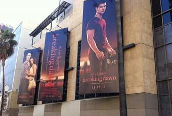 A Hollywood, les fans peuvent voir de superbes posters promotionnels de Breaking Dawn ! Wouahou, les chanceux ! Ne pourrions pas voir ça en France ? ^^ Bon allez, plus que 3 petits jours d'attente avant la sortie de l'avant dernier chapitre de la saga au cinéma en France ! Yeahhh ! :)