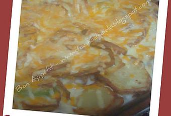 En una fuente para gratinar, poner el pescado desmigado, las gambas, el atún escurrido y desmigado, las patatas y las calabacines. Añadir la salsa y el queso rallado. Gratinar al horno y servir caliente.