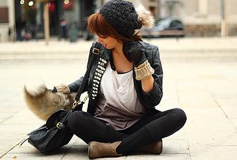 Je porte : Bonnet : Promod ( customisé avec un pompon )Perfecto : ZaraTee-shirt : 1,2,3Leggings : H&MBoots : Minellisac : Arafeel ( Que je ne le quitte plus d'ailleurs.. )