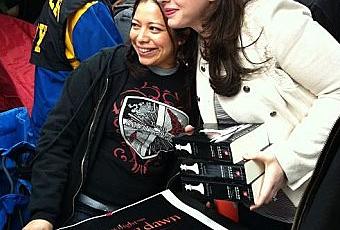 Stephanie Meyer est passée voir les campeurs qui attendent pour l'avant première Breaking Dawn à LA, elle est arrivée les bras chargés de livres dédicacés et a pris le temps de poser avec les fans :)