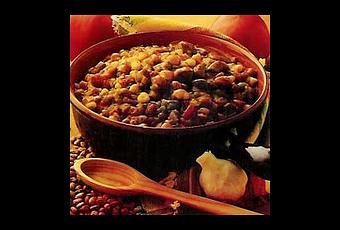 - Hacher grossièrement le poivron. L'ajouter dans la cocotte avec haricots, pois chiches, tomates, concentré, sel, poivre et piment. Bien mélanger.
