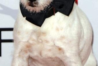 Voici ce dimanche donc, le chien de The artist présent sur le tapis rouge à Los Angeles avec son maître de cinéma, Jean Dujardin :