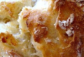 8. Pour la cuisson, faites chauffer le four à 240 degrés dix minutes avant d'enfourner avec, sur une grille un récipient rempli d'eau. Mettez la plaque au four, pulvérisez d'eau et faites cuire les pains 20 minutes.Laissez refroidir avant de couper en tranches.