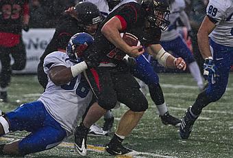 Grosse victoire des GogoGarnois qui ont écrasé la défensive du Vieux au compte de 59-31... 59 points contre la défensive du Vieux, ça doit être du jamais vu. Le joueur du match, sans conteste celui qu'on a icônisé pour représenter le recrutement 2012, Luis Andrès Guimont-Mota.