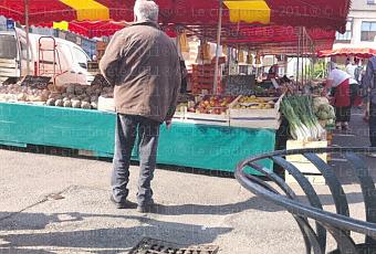 Déjà, il faut être au cul du camion, poser les tréteaux, les bâches pour se couvrir en cas de pluie puis sortir les lourds cageots de fruits, de légumes encore tout fraîchement mis de ce matin (5 heures) pour une vente dès 8 heures à la criée si je puis dire.