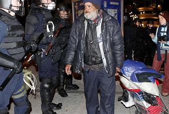 Les manifestants n'ont semblé offrir qu'une résistance symbolique, même si certains ont été menottés et emmenés. Les policiers avaient précédemment tenté de démanteler le campement le 25 octobre, à l'aide de gaz lacrymogènes et de sacs de plombs.