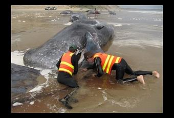 SYDNEY - (AFP) - Vingt-deux cachalots sont morts échoués sur un banc de sable tout près de l'île australienne de Tasmanie, ont indiqué lundi les autorités des Parcs et de la vie sauvage, qui tentaient de sauver deux autres de ces mammifères. Des spécialistes se sont rendus à Macquarie Harbour, près de Strahan, sur la côte nord-ouest de Tasmanie, mais les opérations de sauvetage étaient rendues difficiles par les conditions météo, ont ajouté les autorités. Vingt-deux cachalots, longs de 12 mètres et pesant plus de deux tonnes, se sont échoués samedi soir à Ocean Beach, près de Strahan, et tous ont péri. Quatre autres sont entrés dans le port et ont été coincés par un banc de sable. Deux ont été dégagés et sont repartis vers le large, mais deux étaient toujours coincés lundi, ont ajouté les sauveteurs. Deux baleines de Minke (petits rorquals) se sont également échouées non loin et sont mortes. Les cachalots sont si gros qu'ils ne peuvent pas être simplements tirés par des sauveteurs, a indiqué Chris Arthur, un des responsables des services des Parcs et de la vie sauvage. "Nous avons conçu un filet spécial, attaché à deux bateaux, qui se glisse sous le corps de la baleine, nous permettant ainsi de la tirer hors de danger", a-t-il expliqué. "Cette méthode, qu'on utilise pour les gros animaux, est très efficace". En raison de la dégradation des conditions météo, il a été impossible de libérer les deux cétacés toujours coincés, "mais nous espérons que les conditions vont s'améliorer au cours des prochains jours", a ajouté Chris Arthur. Si l'on prend soin d'eux, les cachalots peuvent survivre plusieurs jours dans ces conditions, selon lui. Une autre difficulté sera d'aider les cétacés à franchir un passage très étroit, long de 25 mètres, menant au large et appelé Hells Gates (Portes de l'enfer), a relevé le responsable. En 2007, les experts animaliers avaient secouru, avec succès, sept cachalots coincés au même endroit. Concernant les 22 animaux morts échoués sur la plage, des échantillons ont été prélevés sur les cadavres, qui ne seront pas rejetés à la mer car ils sont trop lourds. Tentant d'expliquer la mort de ces animaux, Chris Arthur suppose qu'ils ont été pris dans le ressac et que leurs voies de respiration ont été bloqués par du sable.Les échouages de baleines sont relativement fréquents en Australie, notamment autour de la Tasmanie, mais les scientifiques peinent à trouver des explications à ce phénomène. AFP. GoodPlanet.Info