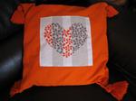 Pour faire honneur à ce joli coeur, tout droit sorti du placard, j'ai finalement opté pour un montage sur un coussin du même ton.