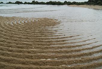 Bon, ce soir, de structure durable à l’art éphémère nous amène à une oeuvre que l’on qualifie de land art éphémère qui prend pour modèle une forme qui se trouve dans la nature: le sillon des cercles concentriques dans l’eau.