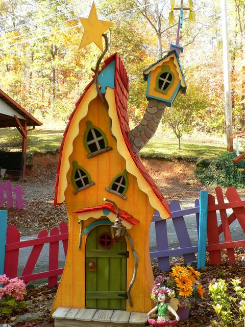 Cet été Hubby a ramené un magasine a la maison qui avait deux pages sur sa ville natale: Blairsville, GA. A l’intérieur il y avait la photo d'une maison tarabiscotée qui m'a intriguée. Il s'agit du travail d'Art Millican, un artisan qui a travaille plusieurs années pour Disney. Sa passion? Créer des maisons de fées et de gnomes.En fait on y est passe devant plusieurs fois et le nom m'avait intriguée. Mais sans savoir ce qui s'y passe je ne m'y étais jamais arrêtée. En présence de sa petite soeur, nous sommes retombees en enfance pour aller y jouer. L’entrée du village est gratuite, les maisons sont en fait a vendre et de taille parfaite pour un jardin avec des enfants.