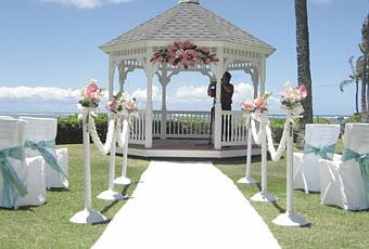 Un tapis d’église de mariage blanc, pour un thème de princesse romantique classique et chic. la cérémonie de mariage peut etre simplement décoré de fleurs, de couronnes de fleurs, de boules de fleurs ou bien de tout autre décor simple et coloré.
