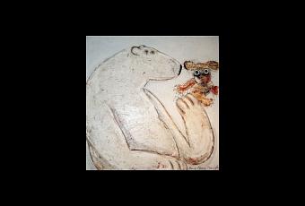 Hervé Maury est le premier artiste à exposer au Château de Balazuc, en Ardèche. Ici, l’ours y est mis à l’honneur. Mêlant l’humour et l’esprit naïf propre à l’enfance, le peintre marseillais a répondu à la demande : celle de s’inspirer très librement des gravures de l’art paléolithique qui ornent les parois de la grotte Chauvet, la plus ancienne grotte ornée du monde, située non loin de là, à Vallon-Pont-d’Arc…