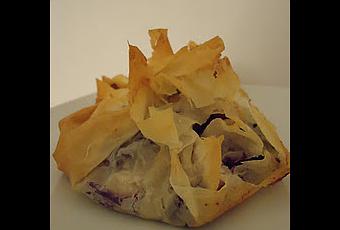 curry. Salez, poivrez et réservez. Retirez le boyaux des boudins et faites les revenir à la poele 5min. Réservez. Epluchez les litchis et coupez les en 4. Préchauffez le four à 190°. A l'aide d'un pinceau, badigeonnez de beurre une feuille filo. Superposez une seconde feuille. Lissez. Déposez au centre du chou, puis du boudin et enfin quelques morceaux de litchi. Repliez les bords des feuilles filo. Répétez l'opération pour réaliser 3 autres croustillants. Enfournez pendant 15/20min.