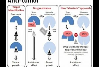 Le développement d'une nouvelle classe d'inhibiteurs de la RAF qui ne se lient au site actif de l'enzyme permet d'éviter les limitations des médicaments actuels. Car ces inhibiteurs allostériques, modifie la forme de l'enzyme cible et, ce faisant, la rend inactive. Le médicament testé par les chercheurs, connu sous le nom KG5, isole l'enzyme RAF dans les cellules en prolifération, mais ignore les cellules normales ou au repos. Dans les cellules tumorales touchées, la RAF est incapable d'induire la division cellulaire, ce qui entraîne un arrêt du cycle cellulaire conduisant à l'apoptose ou mort cellulaire programmée. KG5 interfère efficacement, de la même manière, avec l'angiogenèse ou prolifération des vaisseaux sanguins.