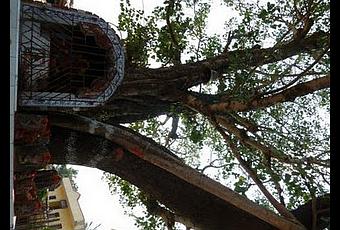 (désolé, il refuse de se mettre à l'endroit !) A son pied, on trouve des serpents sculptés, car les cobras logent dans les racines des figuiers, et les femmes décalottent les noix :