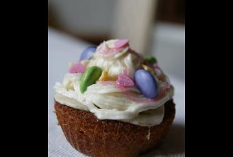 Préparez le toping : dans un bol, mélangezle fromage avec le sucre glace. Placez le topping dans la poche à douille et décorez les cupcakes à votre goût. Au tout dernier moment, juste avant de les servir, saupoudrez les cupcakes de vermicelles colorés.