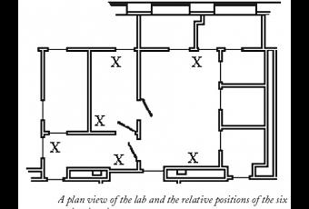 · La deuxième expérience se déroulait dans le monde réel, dans le laboratoire du chercheur (visuel ci-contre). Il s'agissait de dissimuler dans des boîtes des objets choisis sur une table et de se déplacer soit à travers une pièce, soit de parcourir la même distance mais en franchissant la porte. Les résultats sont identiques à ceux de la précédente expérience, en environnement virtuel. Franchir la porte diminue la mémoire des sujets.