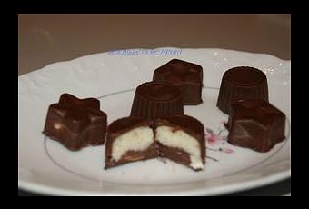 Vos moules sont pris, mettre la préparation dans chaque chocolat et fermer ensuite avec une couche de chocolat.