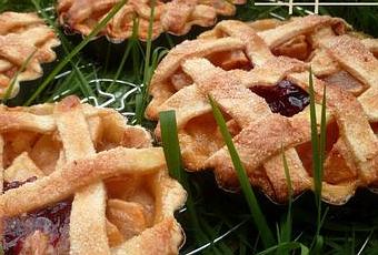 Encore une recette avec des pommes me direz-vous !! Et bien oui, autant en profiter et varier les plaisirs. Des petites "apple pies" à tomber par terre, mon homme s'en lèche encore les babines... L'accord avec la pâte sucrée et croquante, les pommes fondantes et la gelée d'airelles qui vient dinamiser le tout, c'est un régal.