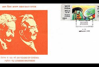 L'enveloppe du premier jour représente les frères Lumière qui ont été les premiers à projeter un film en Inde avec leur cinématographe, à l'hôtel Watson de Bombay. Vous vous rappelez ?