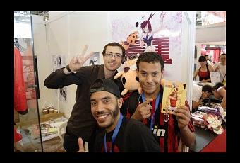 Accompagné de VoLT, je lui expliquais l’histoire depuis le début et mon lien avec ce manga. Il me répondit simplement en disant: «Bah va leur parler et acheter le livre». Tel un fan de Patrick Bruel, je m’approchais les jambes tremblotantes. Je me présentais donc en essayant de garder un semblant de calme. Le monsieur me proposa donc de rencontrer l’auteur du manga. Rien que ça.