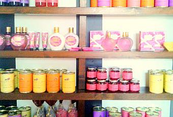 Des gels douches rose-violette qui plairont à Mamie et et aux nostalgiques des produits de beauté de son époque, des baumes à lèvres façon calissons d'Aix-en Provence, des eaux parfumés sucrées...