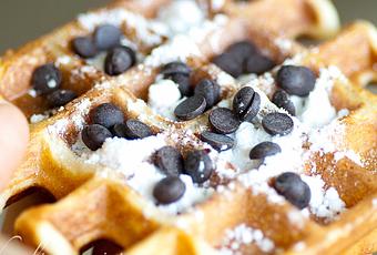 Tous les éléments étaient réunis pour un brunch du dimanche idéal. Il ne manquait qu'une chouette recette de gaufre que j'ai dénichée chez Audrey et qui est parfaite : les gaufres sont délicieuses et surtout il n'y a pas besoin de faire reposer la pâte (ce qui est quand même hyper relou!). Recette initiale de "La cuisine de Ducasse par Sophie".