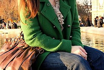 Manteau : Tara Jarmon, Robe portée en haut : Paul & Joe sister, Jean : Les petites, Chaussures : Jonak, Beret : Vintage, Sac : Miu Miu.