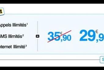 - L’Internet illimité : navigation web et e-mails illimités, en nombre, en volume et en durée, depuis la France métropolitaine sous réserve d’un mobile compatible, hors clé 3G. Pour garantir la qualité de réseau, au-delà d’un usage de 500 Mo/mois, réduction possible du débit jusqu’à la prochaine date de facturation. Les usages modem, voix sur IP, peer to peer, newsgroups, envois de spams sont interdits et facturés en supplément au tarif en vigueur.