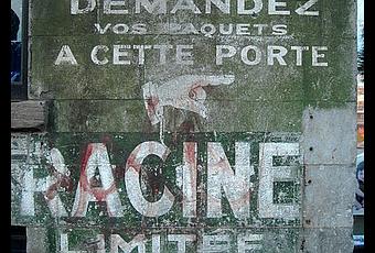 Premier artéfact: J'ai tenté de demander des paquets, mais il y a longtemps que la porte en question n'ouvre plus sur un bureau de douane ou de poste. C'est la seule ancienne inscription en français que j'ai déniché dans mes balades. (Rue de la Commune).