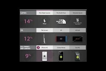 18 % des consommateurs ont déclaré vouloir acheter un ordinateur ou une tablette, 17 % se jettera sur les jeux, DVD et musique, 16 % sont plus intéressés par une bonne paire de chaussures, 14 % vont acheter des vêtements, 12 % veulent acheter une nouvelle TV tandis que 9 % prévoit d'acheter un nouveau téléphone ou un appareil photo. Le restant 14 % prévoit au contraire d'acheter des articles hors listing catégories.