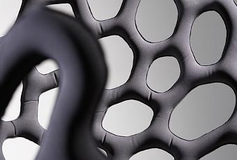 Thus the grid shell structures of the Textile Moulded Chairs are scaled up reflections of the composition of the foam filling. In addition the six-sided polyhedron structure is also optimised to be compatible with the production technique. The resulting organic form is both a response to modern biomorphic architecture and serves as a ‘living’ accent in contrasting geometric living spaces built in materials such as steel, concrete and glass.”