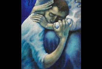 Il s'abandonne et reprend de l’énergie au creux de sa femme, au plus près comme un enfant mais aussi comme un homme avec les bras entourant cette source de chaleur, de réconfort.
