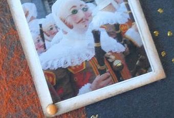 Pour commencer la carte que j'ai faite pour l'anniv de mon tonton (septembre) Il adore le carnaval alors le thème de la carte n'était pas compliqué à trouver!